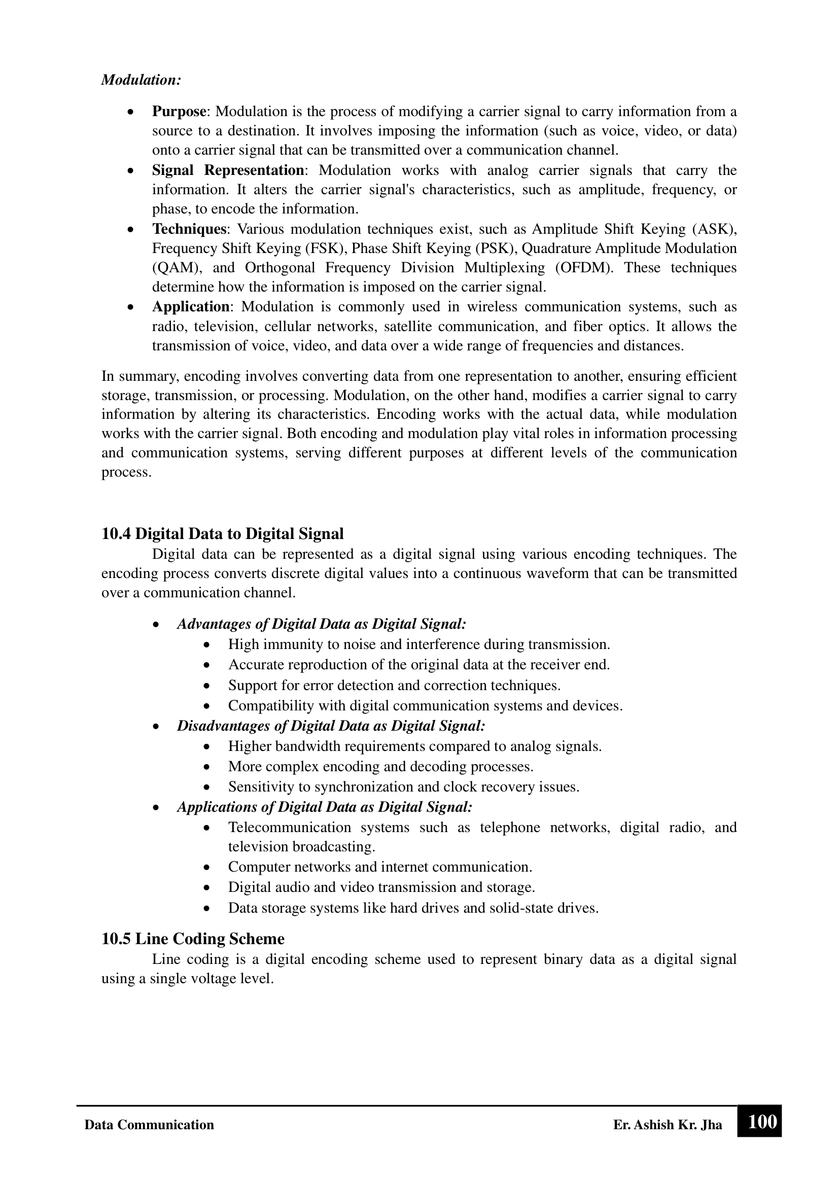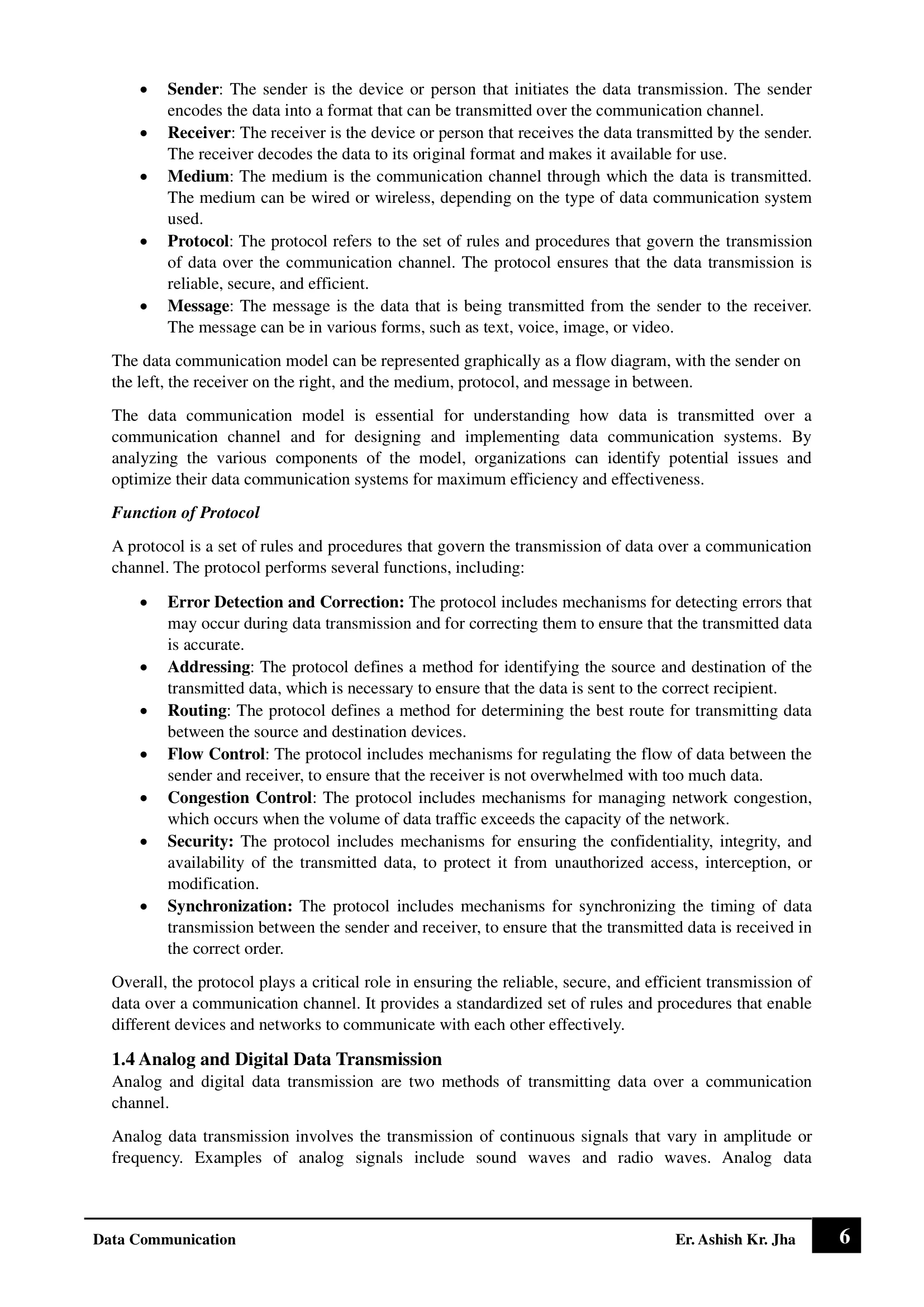 This is a detailed note of Data Communication (DC), structured clearly in a chapter-wise manner. It covers all major concepts, algorithms, and techniques in a simple and organized way, helping students understand topics easily and prepare effectively for examinations.